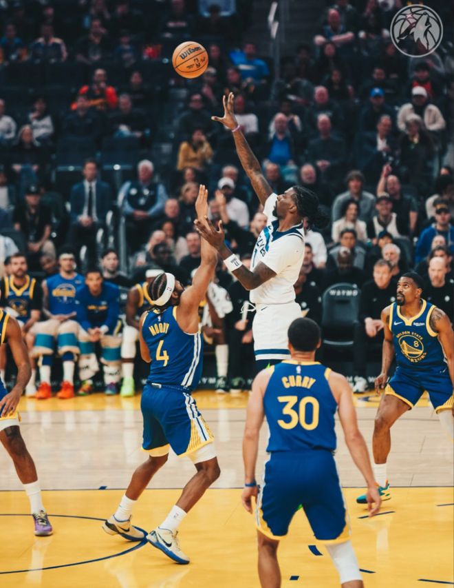 首发阵容方面,森林狼队这边,爱德华兹缺战,教练排出的首发五人组为:海兰德、迪温琴佐、麦克丹尼尔斯、兰德尔、戈贝尔;勇士队这边,库里伤愈复出,追梦格林和霍福德缺阵,首发阵容则为:斯潘塞、库里、吉米-巴特勒 、希尔德、昆滕-波斯特。